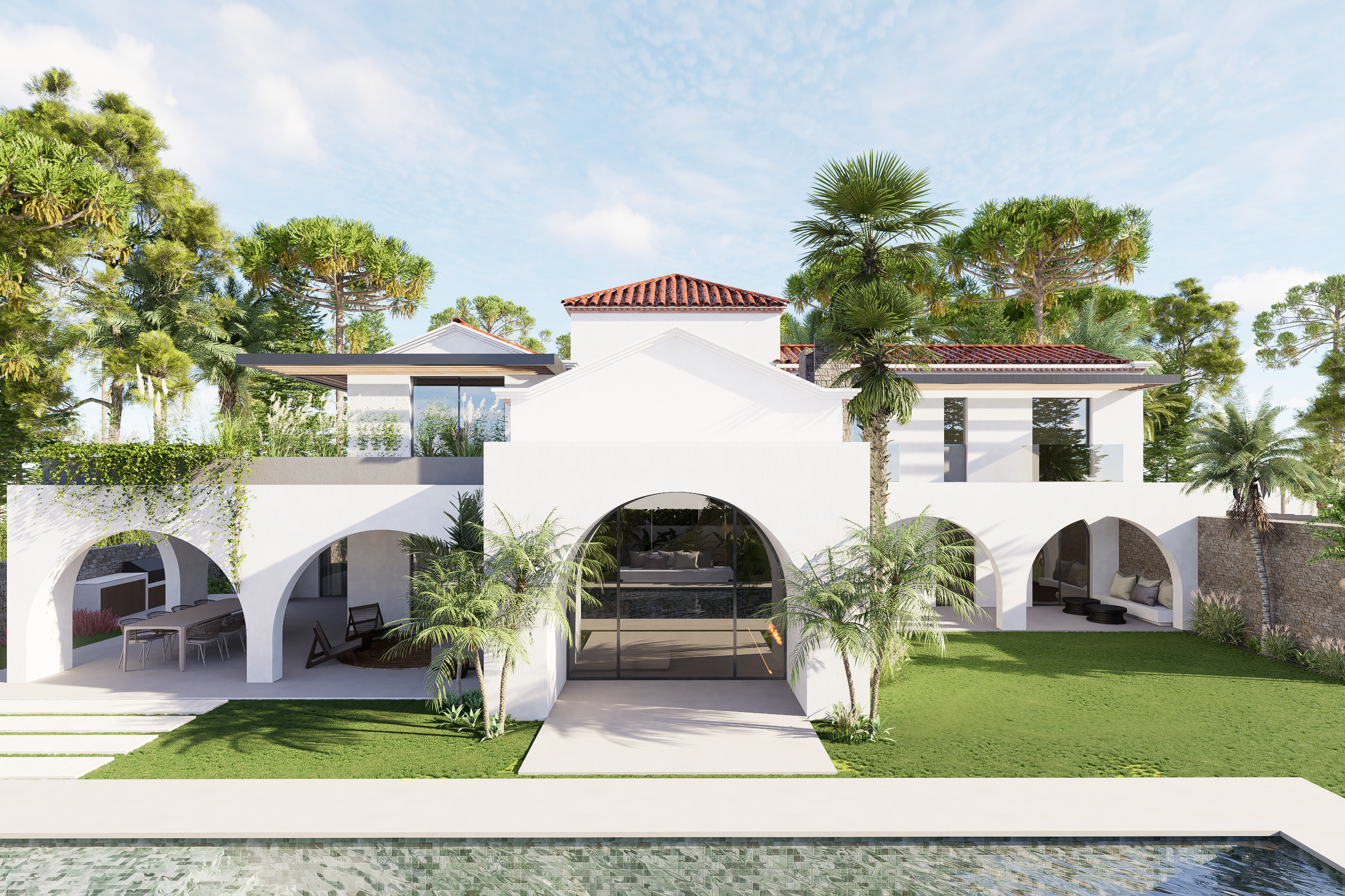 Renovación integral de una antigua villa de estilo español en El Paraíso Barronal, situada a distancia caminable de la playa. El proyecto se desarrolla sobre una parcela de 920 m², con 400 m² construidos, y pone un especial énfasis en la creación de una atmósfera tropical.