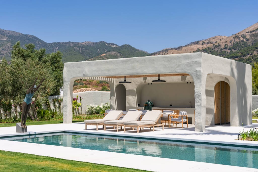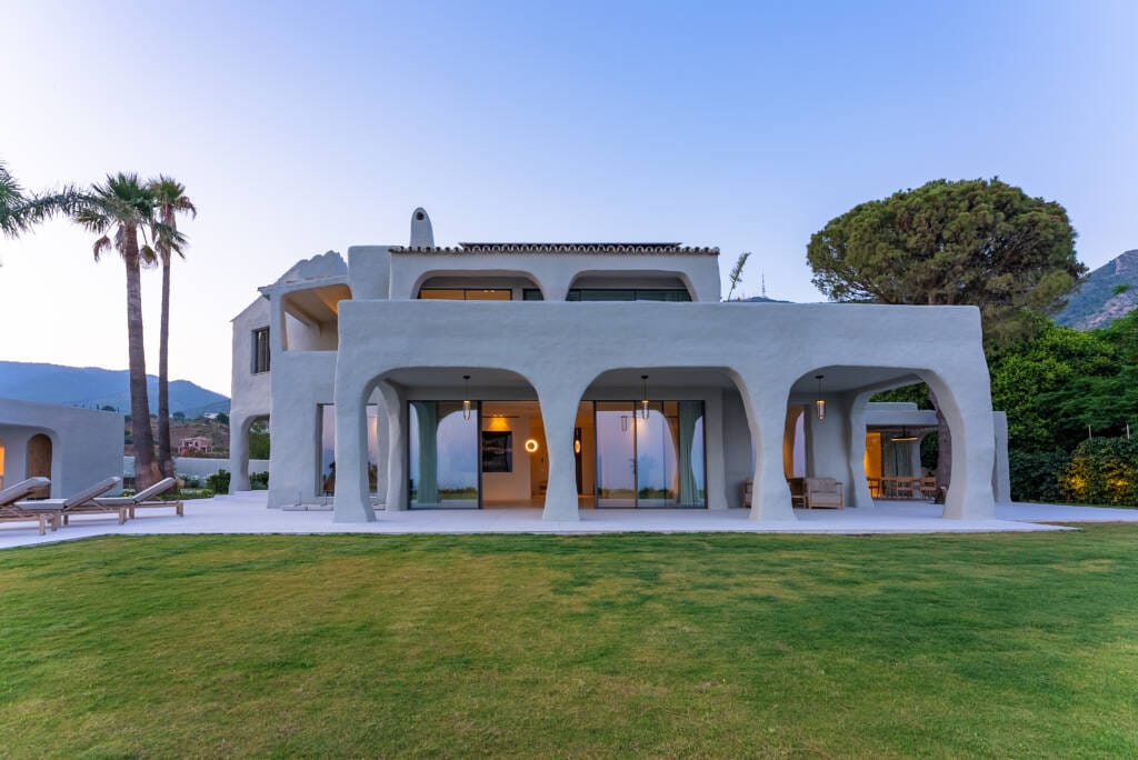 Renovación integral de una antigua villa española con vistas panorámicas al mar en Mijas, desarrollada sobre una parcela de 1.800 m² con 850 m² construidos. El proyecto incluye una poolhouse en el mismo estilo arquitectónico de la vivienda principal y conserva determinados rasgos exteriores originales para respetar y honrar el diseño inicial.
