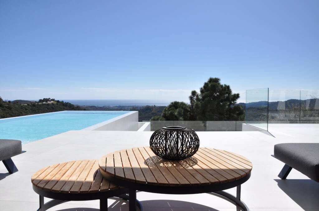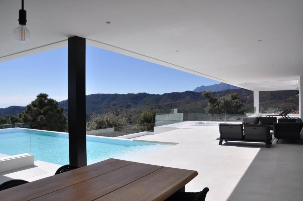 Villa de obra nueva con diseño ultra moderno y funcional en Montemayor, Benahavís, con impresionantes vistas al mar y un entorno tranquilo, alejado del ruido urbano. La parcela cuenta con 3.800 m² y la vivienda alcanza 1.000 m² construidos, destacando como elemento singular una piscina infinity en voladizo.